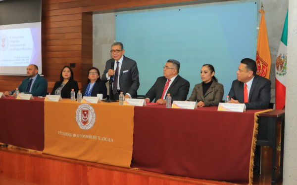 385 Grados / UATx / REDACCIÓN / Nuestra Casa de Estudios se ubica en la frontera de la producción de saberes porque a través del Modelo Humanista Integrador Basado en Capacidades (MHIC) se adelantó desde hace dos décadas a las políticas nacionales que abandera en la actualidad el Gobierno de la República, afirmó el Doctor Serafín Ortiz Ortiz, Rector de la Universidad Autónoma de Tlaxcala (UATx), al dictar la conferencia magistral “Humanismo integrador contemporáneo: un enfoque educativo”, en el marco de actividades por el XXXIX aniversario de la Licenciatura en Ciencias Políticas y Administración Pública de la Facultad de Derecho Ciencias Políticas y Criminología.