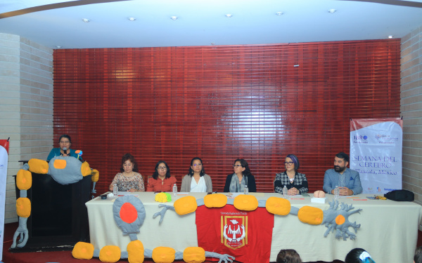 En el Auditorio Anexo a Rectoría, con la presencia de investigadores, estudiantes de posgrado en Ciencias Biológicas y alumnos de secundaria y preparatoria del Instituto Padre Juan Díaz, la Doctora Margarita Martínez Gómez, Secretaría de Investigación Científica y Posgrado, acompañada por la Licenciada Jakqueline Ordóñez Brasdefer, Presidenta de la Comisión Estatal de Derechos Humanos de Tlaxcala (CEDHT), enfatizó que la Semana del Cerebro se realizará del 10 al 14 de marzo, y es un espacio que permite establecer contacto con los estudiantes del nivel superior y medio superior para motivarlos a hacer investigación y abrir diferentes perspectivas acerca del estudio de las neurociencias.