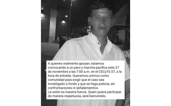 385 Grados / Tzompantepec / REDACCIÓN / La comunidad estudiantil del CECyTE 07 en Tzompantepec lanzó una convocatoria para realizar un paro y una marcha pacífica este 27 de noviembre a las 7:00 a.m., con el fin de exigir justicia por la muerte de Fer, el estudiante de 15 años que fue hallado sin vida la noche del martes en San Andrés Ahuahuastepec.
