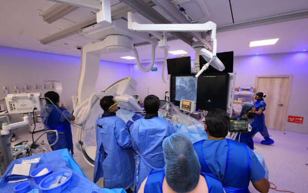 El personal especializado que realizó la primera intervención de corazón en la Unidad de Hemodinamia estuvo integrado por personal en salud de técnicos radiólogos, anestesiólogos, enfermeras cardiovasculares, cardiólogo y personal de servicios generales.