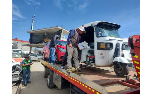 En el mismo punto de inspección, se detectó una motocicleta adaptada, conocida como mototaxi, que realizaba también el servicio de transporte de personas sin la autorización correspondiente, por lo que se procedió de acuerdo a lo que establece el Reglamento de la Ley de Comunicaciones y Transportes del Estado, al tratarse de una unidad irregular cuyo servicio no está autorizado por la dependencia estatal.