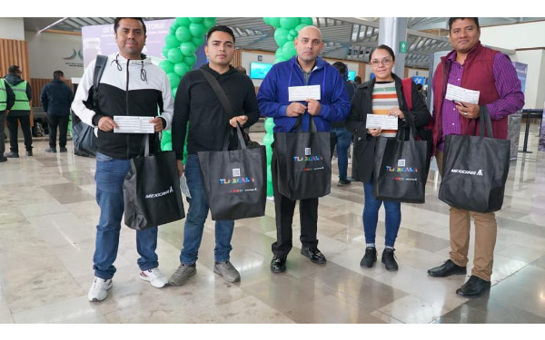A los primeros pasajeros se les entregó un kit promocional integrado con giveaways de varias entidades, una frazada con la marca turística de Tlaxcala y un folleto que contiene información turística de cada uno de los 32 estados.