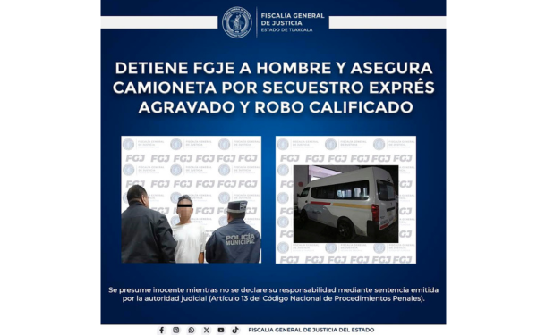 La acción derivó de un reporte recibido a través del Servicio de Emergencias 911, en el que se informó la falta de comunicación con el operador de la unidad de transporte. Tras realizar labores de inteligencia y ubicar la camioneta en el municipio de Tlaxco, el operador refirió que Alejandro N. lo amenazó con un arma punzocortante.