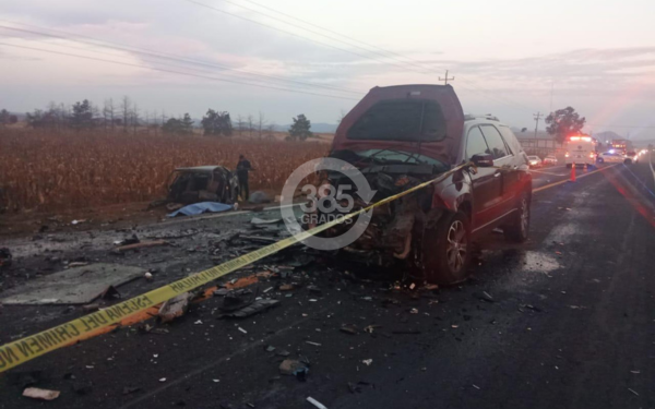 Los hechos se registraron alrededor de las 05:30 horas, cuando un vehículo Volkswagen Jetta, color negro, con placas XTH-786-A de Tlaxcala, y una camioneta GMC Acadia, color vino, con metálicas PAN-81-46 del Estado de México, colisionaron de manera frontal y violenta.