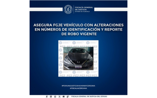 Asimismo, se confirmó que el automóvil contaba con reporte de robo vigente, por lo que fue asegurado y puesto a disposición del Ministerio Público, quien continuará con las investigaciones correspondientes.