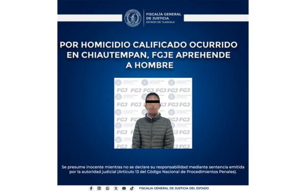 FGJE aprehende a probable responsable de homicidio en Chiautempan