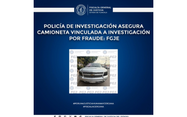 Derivado de esta solicitud, la Policía de Investigación llevó a cabo las inspecciones correspondientes, las cuales arrojaron que la camioneta marca Chevrolet, submarca Tahoe LTZ, modelo 2011, se encontraba relacionada con una carpeta de investigación por el delito de fraude, motivo por el cual fue asegurada y puesta a disposición del Ministerio Público, quien continuará con las indagatorias correspondientes.