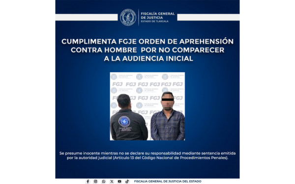 Derivado del mandamiento judicial emitido por un Juez de Control y de Juicio Oral del Distrito Judicial de Guridi y Alcocer, la Policía de Investigación realizó labores de campo y gabinete, logrando la aprehensión del imputado en Los Reyes Quiahuixtlán, municipio de Totolac.