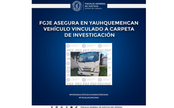 Durante las inspecciones realizadas en un domicilio ubicado en el municipio de Yauhquemehcan, elementos de la Policía de Investigación, en coordinación con Peritos del Instituto de Ciencias Forenses (INCIFO), localizaron un vehículo marca Isuzu, tipo caja seca, modelo 2018, color blanco con azul, el cual estaba relacionado con una carpeta de investigación por el delito de robo de vehículo de carga con violencia.