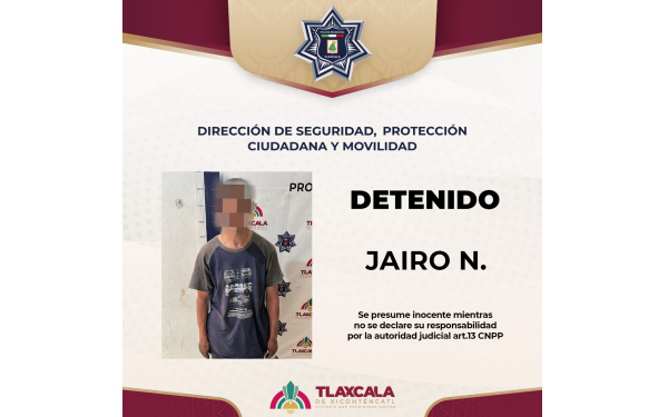 Posteriormente, el detenido fue puesto a disposición de la Fiscalía General de Justicia del Estado de Tlaxcala, instancia que determinará su situación jurídica conforme a derecho.