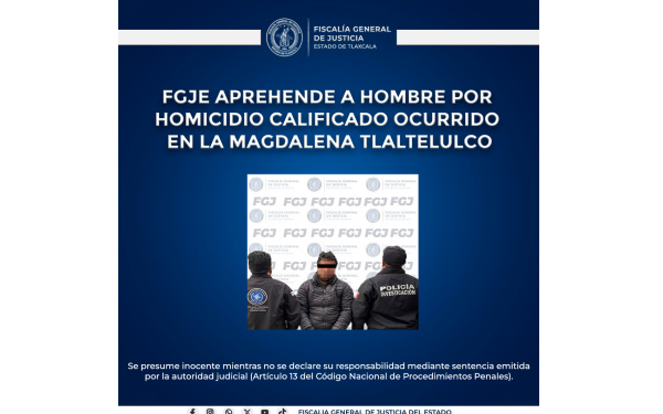 En cumplimiento de dicho mandato, elementos de la Policía de Investigación realizaron labores de búsqueda y localización, logrando la aprehensión del imputado en el municipio de Xicohtzinco, donde se le informó el motivo de su detención, así como los derechos que le asisten como persona detenida.