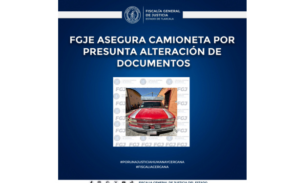 Derivado de lo anterior, los elementos de Investigación se trasladaron al lugar y corroboraron que los documentos presentaban alteraciones. Por esta razón, la camioneta y la documentación fueron puestas a disposición del Ministerio Público, quien continuará con las indagatorias correspondientes.