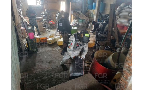 Los elementos se dirigieron al lugar, del que emanaba un fuerte olor a hidrocarburo, además al realizar una inspección terrestre, los efectivos castrenses se percataron de que la puerta se encontraba abierta y en el interior se encontraban bidones y garrafones que contenían hidrocarburo.