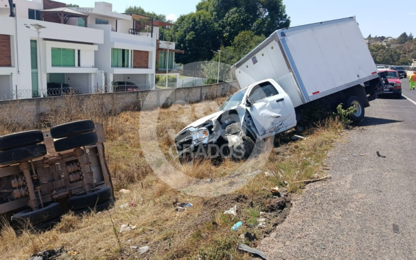 De acuerdo con los primeros reportes, inicialmente se registró el choque de una camioneta contra el muro de contención; sin embargo, minutos después se confirmó la volcadura de una unidad pesada en el mismo punto, lo que provocó un bloqueo parcial y en algunos tramos total de la vialidad.
