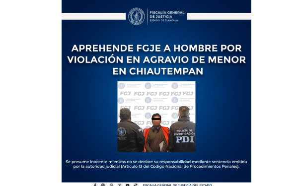 Los hechos por los que fue detenido se registraron en el año 2021, en el municipio de Chiautempan, donde el imputado, tío de la víctima, la agredió sexualmente y además la amenazó para que no revelara lo ocurrido. No obstante, la menor decidió contárselo a su madre, quien presentó la denuncia ante el Ministerio Público.