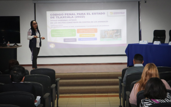 Asimismo, enfatizó en los criterios contemplados en el Código Penal para el Estado Libre y Soberano de Tlaxcala, los cuales refieren los actos que se consideran como maltrato o crueldad animal, además, de explicar que el bienestar animal es el estado físico y mental de un animal en relación con las condiciones en las que vive y muere.