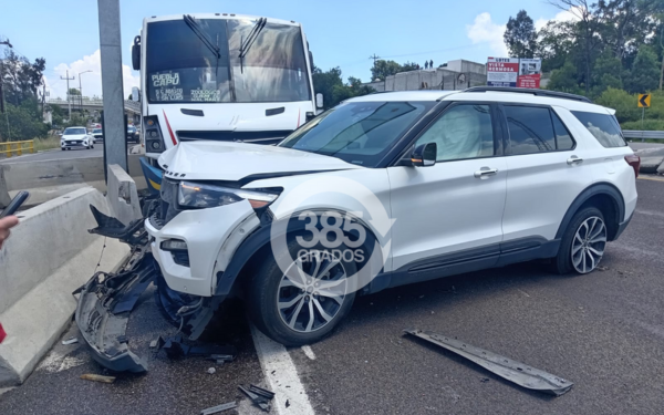 Según testigos, el percance ocurrió cuando la camioneta, de color blanco, presentó una supuesta falla mecánica, por lo que intentó incorporarse al carril por el que circulaba el minibús, impactándose contra el muro de contención y contra el minibús.
