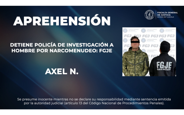 385 Grados / FGJE / REDACCIÓN / Elementos de la Policía de Investigación de la Fiscalía General de Justicia del Estado (FGJE) detuvieron a Axel N. por delitos contra la salud, en su modalidad de narcomenudeo, y aseguraron un vehículo marca Volkswagen, tipo Gol, color verde.