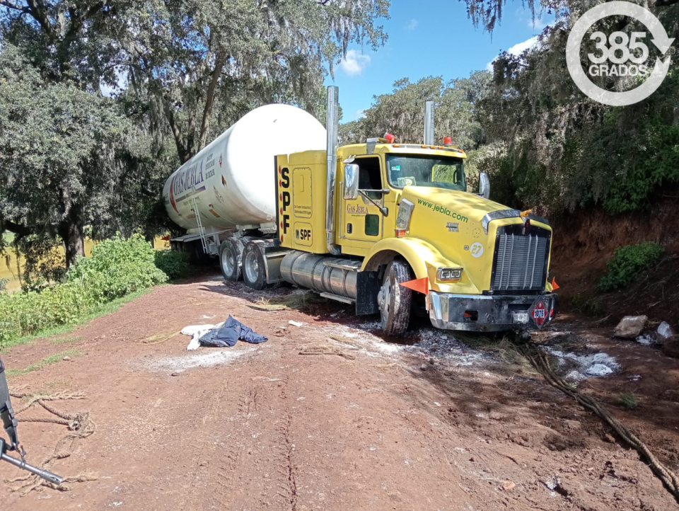 385 Grados / Calpulalpan / Alexis P. González / Un operativo de seguridad culminó con el aseguramiento de un tractocamión con autotanque de 50 mil litros de gas LP la mañana de este domingo 12 de octubre.