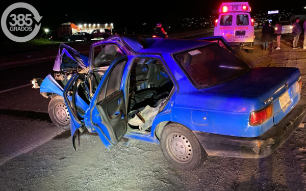 385 Grados / Tlaxco / Alexis P. González / Un aparatoso accidente vial se registró la noche de este domingo 12 de octubre en el acceso a Tlaxco, cuando un vehículo particular se impactó de lleno contra el letrero turístico de la localidad.