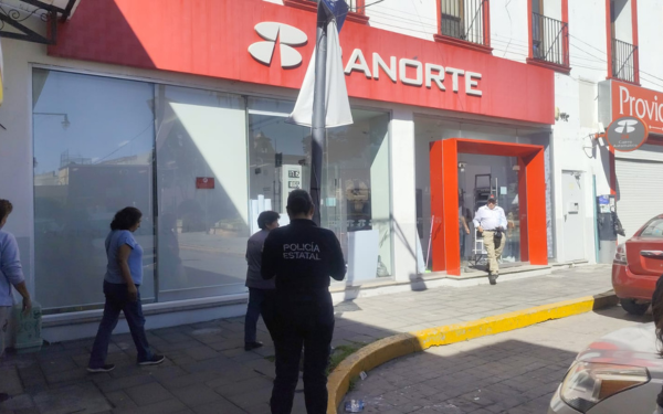 El incidente se registró este martes a las 13:30 horas aproximadamente en la sucursal bancaria ubicada en la Privada Bernardo Picazo, en el centro de San Onofre.