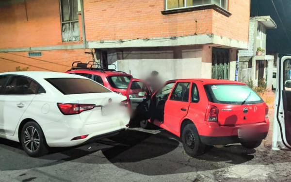 Durante los recorridos de vigilancia, los oficiales detectaron un Volkswagen Pointer rojo abandonado y con daños tras chocar contra dos autos estacionados en el fraccionamiento Tres Volcanes. Al corroborar con el propietario, se confirmó que el vehículo había sido manipulado, pero no pudo ser robado gracias a que contaba con bastón de seguridad en el volante.