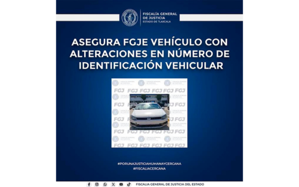 La Fiscalía General de Justicia del Estado reitera su compromiso con la prevención, investigación y combate al delito de robo de vehículos, así como con el fortalecimiento de la legalidad y la certeza patrimonial en beneficio de la ciudadanía tlaxcalteca.