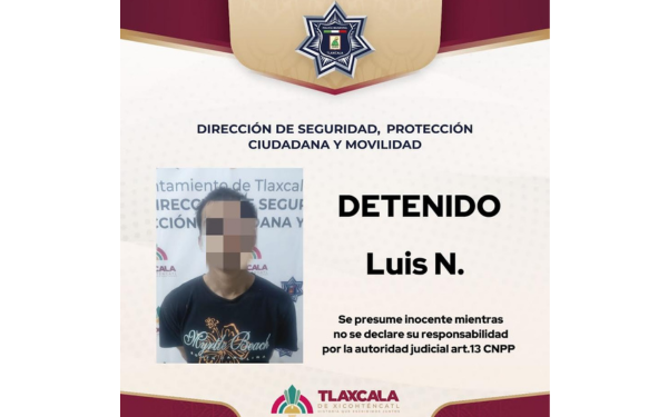 El aseguramiento se realizó la noche del miércoles, cuando policías preventivos detectaron a un masculino en actitud sospechosa sentado junto a un local comercial sobre la calle Allende, en la colonia Centro. Al proceder con la inspección preventiva y solicitar su identificación, el sujeto dijo llamarse Luis “N”, con domicilio en San Hipólito Chimalpa.