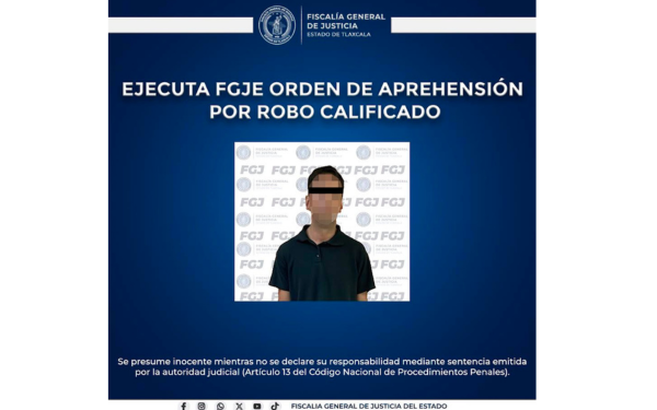 Detenido por robo calificado: FGJE captura a sospechoso en Tlaxcala