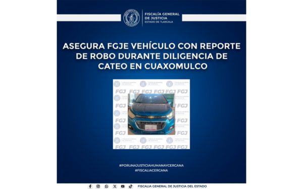 La Fiscalía General de Justicia del Estado reafirma su compromiso con la legalidad y la protección del patrimonio de la ciudadanía tlaxcalteca, mediante acciones de investigación sólidas y coordinadas que permiten avanzar en el combate al robo de vehículos.