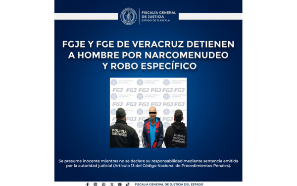 Por ello, se solicitó el apoyo de la FGJE para la localización y aprehensión del masculino. Personal de la Policía de Investigación llevó a cabo las labores de búsqueda y logró la detención del investigado en el municipio de Tlaxcala.