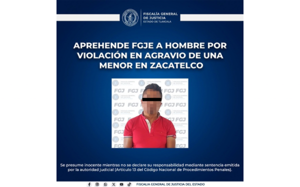 Los hechos por los que fue detenido ocurrieron el 7 de enero de 2023, en el municipio de Zacatelco, donde el investigado —padrastro de la víctima— la agredió sexualmente. Al percatarse de lo sucedido, la madre de la menor presentó la denuncia correspondiente.