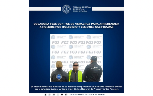 En cumplimiento del mandamiento judicial emitido por un Juez de Control del Juzgado de Proceso y Procedimiento Penal Oral de la ciudad de Huatusco, elementos de Investigación de la Fiscalía de Veracruz llevaron a cabo las labores de búsqueda correspondientes, localizando al investigado en territorio tlaxcalteca.