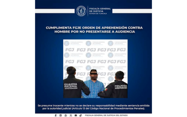 Detenido por lesiones: FGJE cumple orden de aprehensión en Apizaco