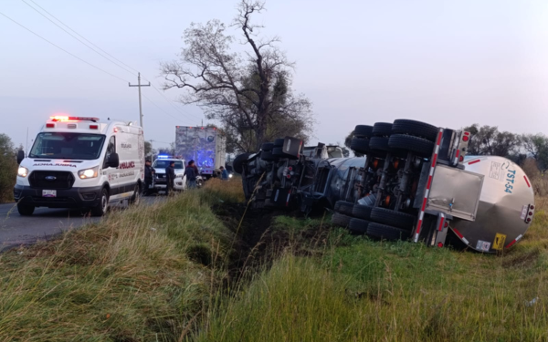 El vehículo involucrado, una pipa de transporte de carga, quedó volcada a un costado de la carretera, de modo que las autoridades policiales abanderaron el lugar, al tiempo que una empresa de grúas trabajó por varias horas para retirar la unidad siniestrada.