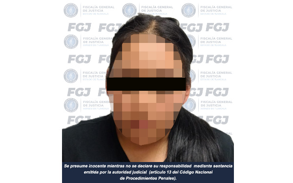 Derivado de las investigaciones realizadas por el Ministerio Público, Policía de Investigación y Peritos, la Fiscalía General de Justicia del Estado (FGJE) logró la aprehensión de María Teresa N., alias “La Mayte”, por el delito de feminicidio, cometido en Zacatelco.