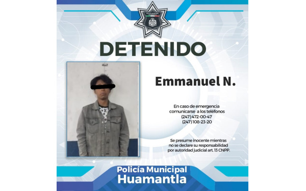 El aseguramiento de la persona, que dijo llamarse Emmanuel N. de 23 año, fue resultado de los recorridos de prevención y vigilancia que realizan los uniformados por las vías de comunicación del municipio, quienes al transitar por la calle Zahuapan y camino a Guadalupe, se percataron que un sujeto iba empujando una motocicleta.