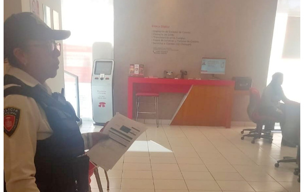 385 Grados / Huamantla / REDACCIÓN / La tarde de este lunes se recibe una llamada a los números de emergencia, donde se reporta la presencia de presuntos asaltantes al interior de una institución bancaria, por lo que elementos de la policía municipal, se trasladan de manera inmediata al lugar.