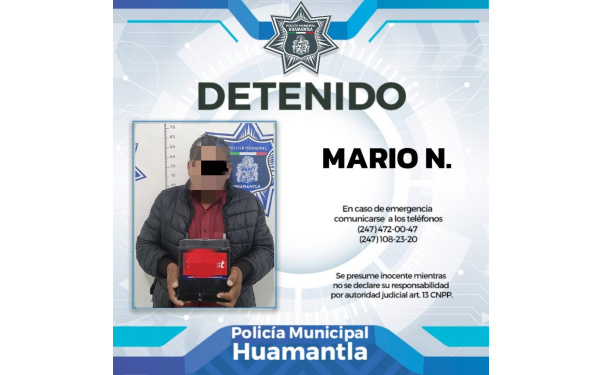 Está detención se produjo sobre la calle Fernando Hernández Carrasco, cuando los oficiales dieron alcance a Mario N., oriundo de Puebla, señalado directamente por el gerente de la tienda comercial afectada, por lo que se le aseguró con el objeto en cuestión.