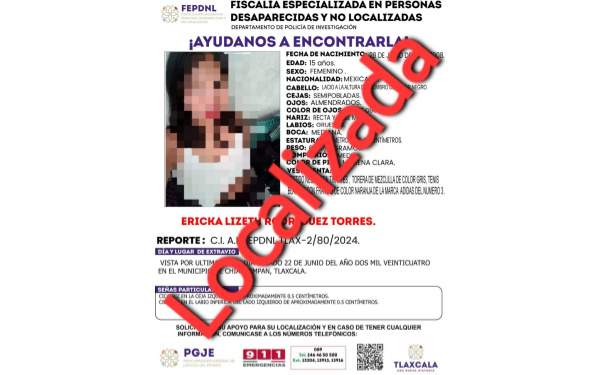 De acuerdo con los hechos, familiares de la adolescente presentaron la denuncia ante la FEPDNL en la que referían que fue vista por última vez en el municipio de Chiautempan, por ello, personal de la Fiscalía emitió la ficha de búsqueda correspondiente.
