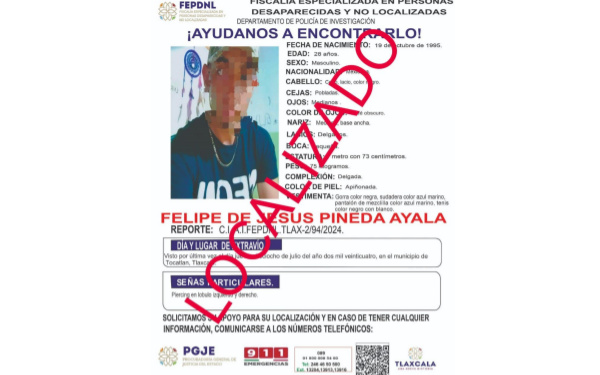 De acuerdo con los hechos, familiares del hombre presentaron la denuncia por su desaparición ante la FEPDNL, en la que referían que fue visto por última vez en Tocatlán.