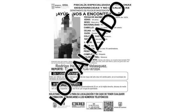 Tras activar el protocolo de búsqueda correspondiente, el masculino se presentó en las instalaciones de la Fiscalía, a fin de dar de baja su ficha de búsqueda, por ello, elementos de Investigación se identificaron plenamente y lo presentaron ante el Ministerio Público.