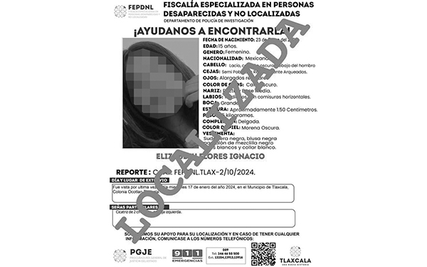 Derivado de la denuncia presentada por los familiares de la adolescente en la que explicaron que fue vista por última vez en el municipio de Tlaxcala, Policía de Investigación llevó a cabo las labores de búsqueda y la menor fue localizada en el municipio de Chiautempan, donde le solicitaron que los acompañara ante el representante social para dar de baja su ficha de búsqueda.