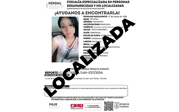 De acuerdo con los hechos, familiares de la mujer presentaron la denuncia correspondiente en la que referían que fue vista por última vez en el municipio de Totolac, por ello, agentes de Investigación iniciaron con las labores de búsqueda.