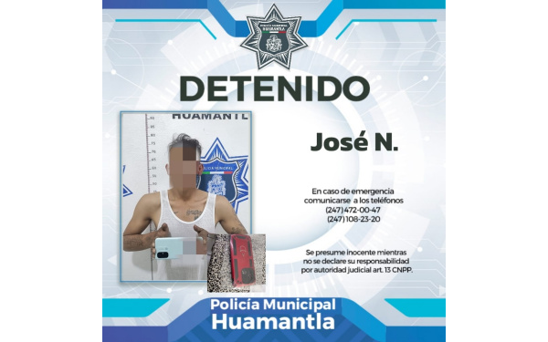 En una rápida y oportuna acción, la Policía Municipal de Huamantla capturó a un sujeto que fue señalado por robar un teléfono celular a una mujer en el Barrio de Santa Anita, por lo que fue asegurado y trasladado a la Unidad Preventiva, a fin de iniciar el trámite para ponerlo a disposición de la autoridad correspondiente y se defina su situación legal.