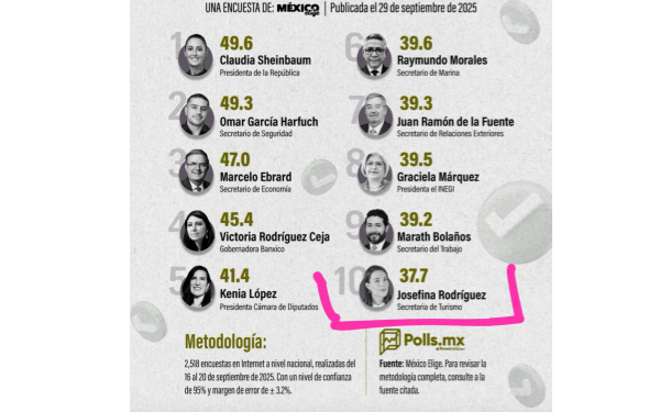 ¿Tú crees que esto sea real? Ranking coloca a Josefina Rodríguez en el Top 10 de políticos mejor evaluados de México