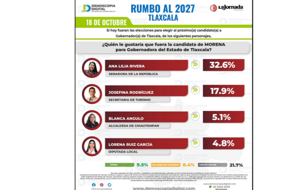 Con el panorama actual, Morena se perfila para continuar al frente del Gobierno del Estado, y de mantenerse la tendencia, Josefina Rodríguez podría convertirse en la abanderada natural de la 4T en Tlaxcala.