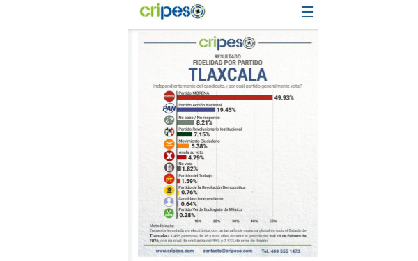 Este crecimiento se suma a la medición de fidelidad partidista levantada en febrero, donde el blanquiazul obtuvo 19.45%, evidenciando una base sólida que no sólo se mantiene, sino que muestra señales de fortalecimiento conforme se acerca el ciclo electoral.