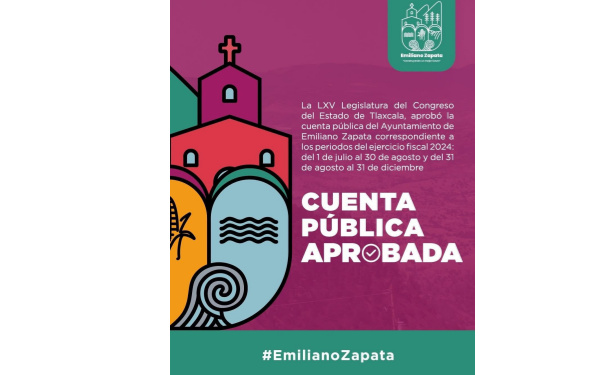 385 Grados / Emiliano Zapata / REDACCIÓN / La LXV Legislatura del Congreso del Estado de Tlaxcala aprobó la Cuenta Pública del Ayuntamiento de Emiliano Zapata correspondiente al ejercicio fiscal 2024, en los periodos comprendidos del 1 de julio al 30 de agosto y del 31 de agosto al 31 de diciembre.
