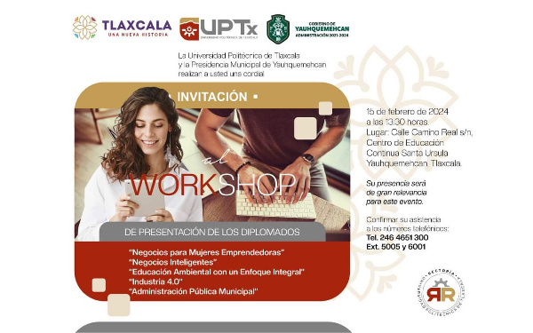 385 Grados / Yauhquemehcan/ REDACCIÓN/ La UPTx y el Gobierno de Yauhquemehcan 2021-2024 invitan a la magna presentación de diplomados que ofrece la institución de educación superior.